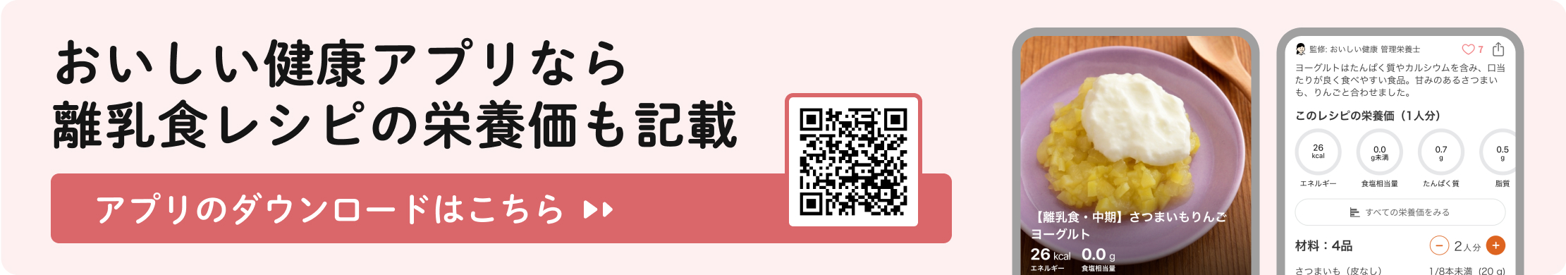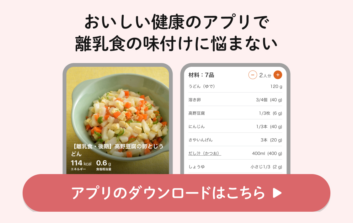 離乳食は、赤ちゃんが食べ物からエネルギーや栄養をとれるようになるだけでなく、食事の楽しさを感じるうえでも大事な時間になります。進み方には個人差があるので、時期はあくまで目安とし、食べる様子を見ながら、赤ちゃんのペースに合わせて見守りたいものですね。