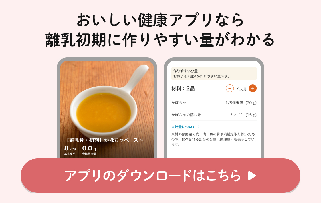 お粥は「授乳・離乳の支援ガイド(2019年改訂版)」には全粥と記載されていますが、おいしい健康では赤ちゃんの状況に合わせて調整できるよう7倍粥のレシピもあります。