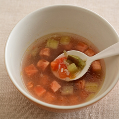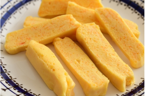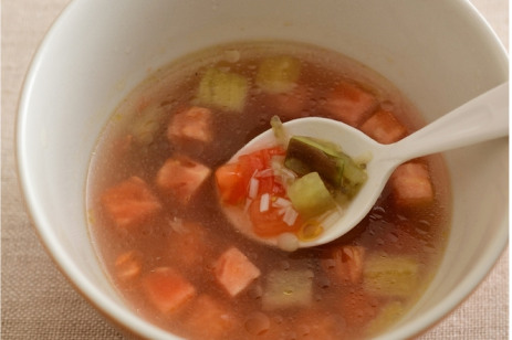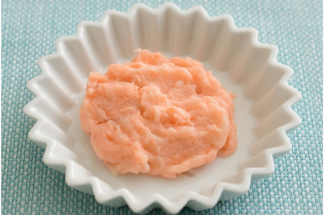 舌でつぶして飲み込めるようになったら、歯茎でつぶせるかたさにしていく時期。