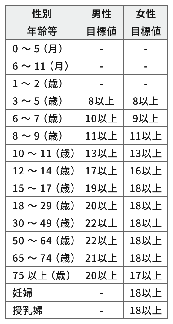 参考:厚生労働省 日本人の食事摂取基準2025年版、文部科学省 日本食品標準成分表(八訂)増補2023年、女子栄養大学出版部 毎日の食事のカロリーガイド第3版、女子栄養大学出版部 エネルギー早わかり表(第5版) 、厚生労働省 令和5年国民健康・栄養調査報告、日本消化管学会 便通異常症診療ガイドライン2023慢性便秘症