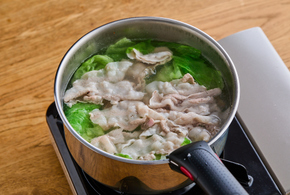 脂身の多い豚バラ肉を使うことで、たんぱく質を控えながら効率的にエネルギーを補給。ぽん酢しょうゆでさっぱりといただけます。