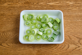 長ねぎは1cm幅に切ります。