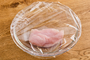 加熱時間は2人分の目安です。鶏肉がまだピンク色で火が通っていないようであれば追加で30秒ずつ加熱をします。