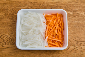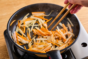 大根とにんじんで作るきんぴら。ごま油とごまの風味が食欲をそそります。お好みで七味とうがらしを少し加えるのもおすすめ。