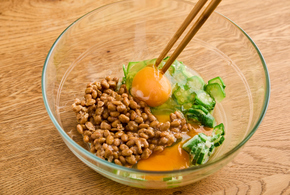 副菜が野菜だけではエネルギーやたんぱく質が不足しがち…そんな課題から生まれたレシピです。主菜に頼らず、副菜でも栄養をしっかり補えるよう、手軽に取り入れやすい納豆や卵を使用しました。