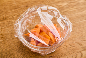 耐熱容器ににんじん、水(分量外:大さじ1)を入れてふんわりとラップをし、電子レンジ(600w)で4分加熱します。