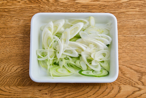 長ねぎは斜め薄切りにします。