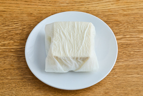 豆腐はペーパータオルに包んで耐熱容器にのせ、電子レンジ(600w)で1分半加熱します。粗熱が取れたら水けをきります。
