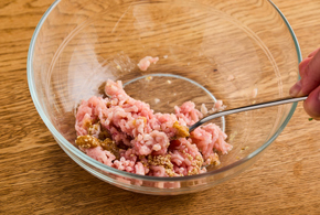 ボウルに肉みその材料を入れ、しっかりと混ぜ合わせます。