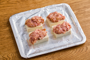 オーブントースターの天板にアルミホイルを敷き、豆腐を並べ、2をのせます。アルミホイルを被せ、8〜10分焼きます。