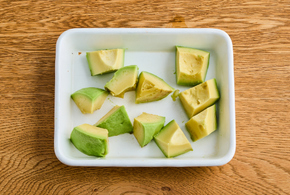 アボカドは2cm角くらいの大きさに切ります。