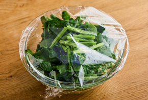 耐熱容器にほうれん草を入れてふんわりとラップをし、電子レンジ(600w)で2分加熱します。