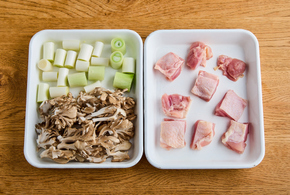 長ねぎは3cm長さに切り、まいたけは手でほぐします。鶏肉は一口大に切ります。Aは混ぜ合わせておきます。