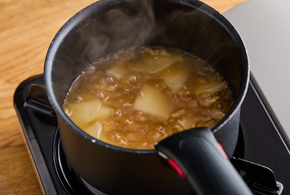 大根が透き通ったらAを加えます。煮立ったら、蓋をして弱火で8分ほど煮ます。