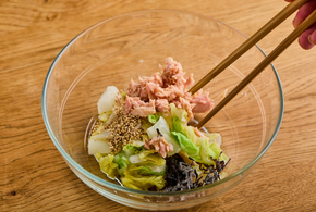 ツナと塩昆布のうま味をいかした、白菜をたっぷり食べられる簡単サラダ。塩分控えめでも満足感のある一品です。