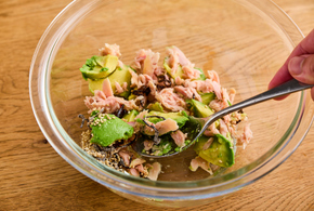 アボカドとツナでエネルギーと良質な脂質が補える一品。包丁要らずであえるだけ。献立に取り入れやすい副菜です。