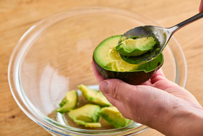 アボカドは食べやすい大きさにスプーンですくい入れます。