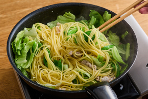 包丁いらず 豚肉とレタスの和風パスタ