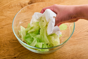 キャベツがくたっとなったら取り出し、粗熱がとれたら余分な水けをペーパータオルで拭き取ります。