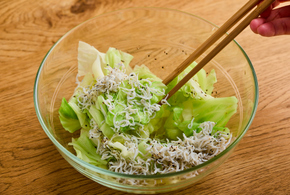 しらすの塩味とキャベツの甘味がほどよくなじんだ一品。包丁や火を使わずに作れるので、あと一品欲しい時にもおすすめです。