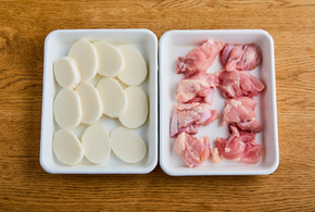 長いもは1cm厚さの輪切りにし、鶏肉は食べやすい大きさに切ります。