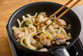 しょうが焼きを鶏肉でアレンジ。玉ねぎは繊維に垂直に切って水にさらすことで、カリウムが流出しやすくなるよう工夫しています。