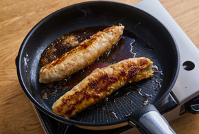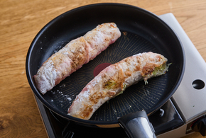 フッ素樹脂加工のフライパンに、巻き終わりが下になるように並べます。中火にかけ、全体に焼き色がつくまで4〜5分焼きます。