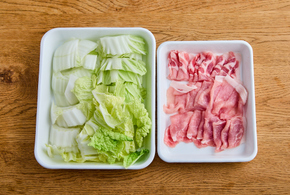 白菜は2cm幅の削ぎ切りにします。豚肉は食べやすい幅に切ります。