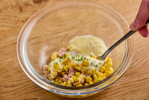 汁けをきったツナ、コーン、マヨネーズ、乾燥パセリをよく混ぜ合わせます。