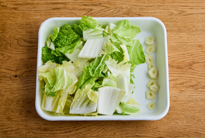 白菜は食べやすい大きさに、にんにくは薄切りにします。