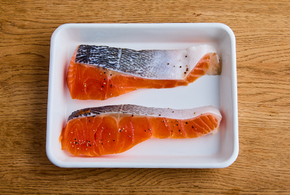 鮭は水けを拭き取り、塩、粗びき黒こしょうを振ります。