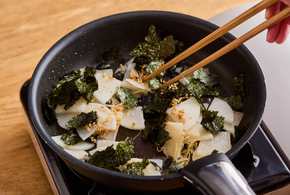 焼き海苔をちぎり入れ、Aを加えて炒め合わせたら出来上がりです。