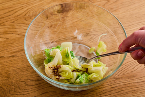 粗熱が取れたら、白菜の水けをしっかりと絞ります。Aを加えてあえたら出来上がりです。