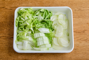 白菜と玉ねぎはそれぞれ1cm幅に切ります。
