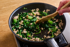 作り置きに ひき肉とほうれん草のしょうゆ炒め