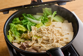 白菜とえのきで食物繊維と食べ応えをプラスした肉豆腐。煮汁を少なくすることで、しっかりとした味わいが楽しめます。