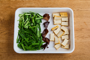 にらは3cm幅に、厚揚げは1cm厚さのひと口大に切ります。