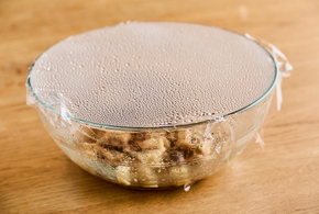 耐熱ボウルにほぐしたしめじを入れ、全ての調味料を加えます。全体に調味料が行き渡るように混ぜ、ふんわりとラップをかけます。