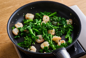 えびと菜の花の蒸し炒め