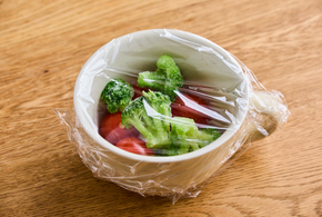 同じ器に凍ったままのブロッコリーを入れます。ふんわりとラップをし、電子レンジ(600w)で3分加熱します。