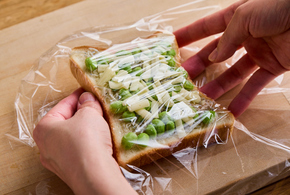 【作り置きしておく場合】ラップに包んで冷凍用保存袋に入れ、空気を抜きながら袋の口を閉じ、冷凍室で保存します。