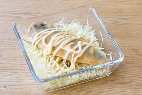 耐熱容器にキャベツを入れ、ふんわりとラップをして電子レンジ(600w)で1分加熱します。