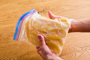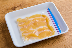 【りんご煮を作り置きする場合】2を常温になるまで冷まし、保存袋に入れます。空気を抜いて袋の口を閉じ、冷凍室で保存します。
