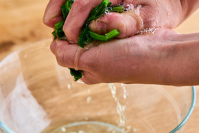 加熱時間は2人分の目安です。しっかりと絞ることで味がぼやけずに仕上がります。
